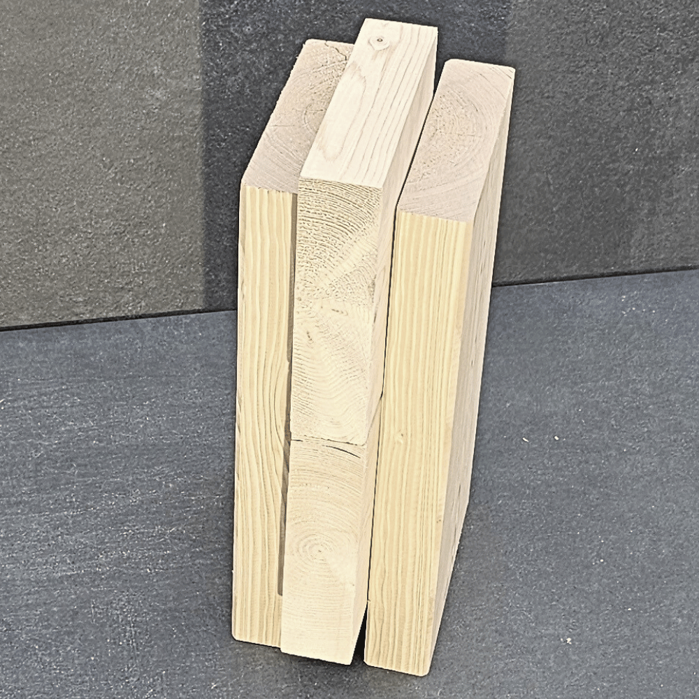 Der NiTO Halbstein 20 × 40 × 15 cm (B × H × T), 5 kg, ist das Element für den versetzten Wandaufbau im Halbverband. Jede zweite Reihe beginnt mit einem Halbstein. So entstehen keine durchgehenden Fugen. Die Wand erhält maximale Stabilität. Der Stein besteht aus 3 Holzbohlen, verbunden mit 12 Holznägeln. Kein Leim, kein Metall, kein Chemie. 100% rückbaubar und wiederverwendbar.