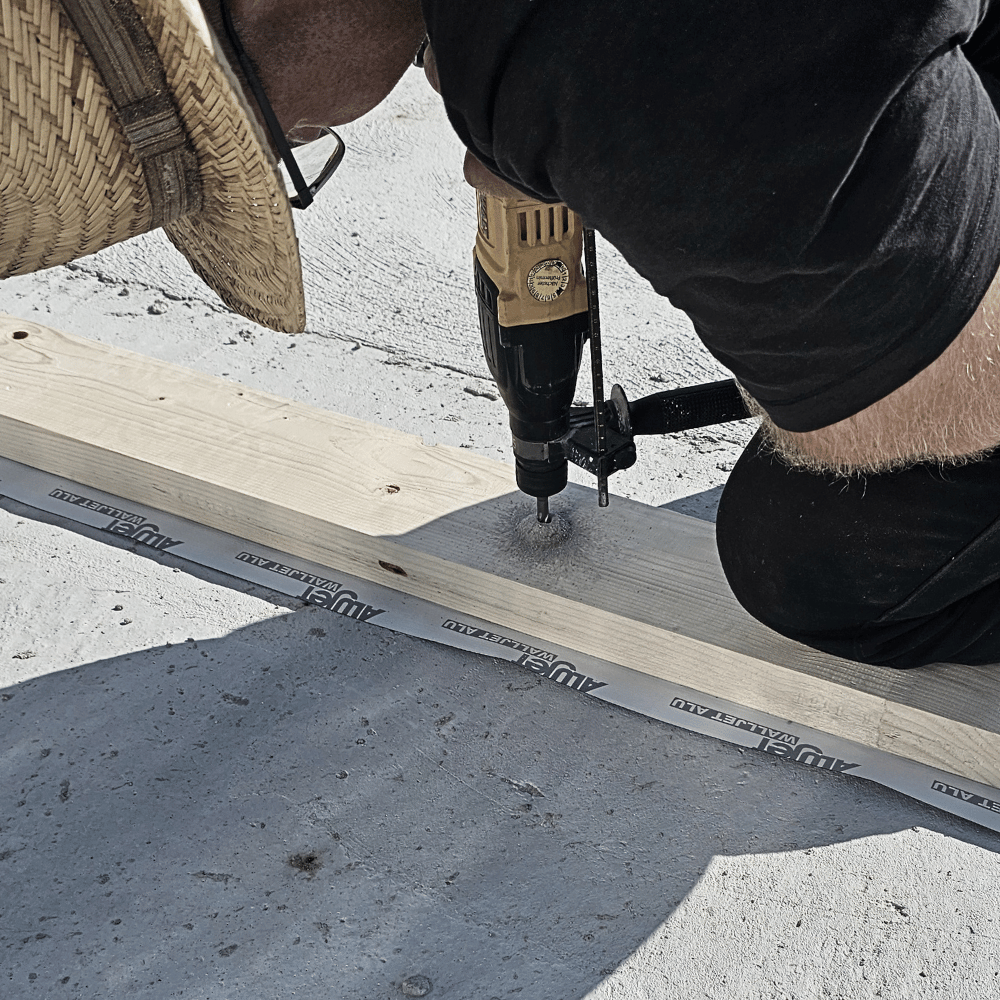 Die NiTO Richtschwelle bildet die Basis jeder NiTO-Wand. Sie ist 15 cm breit, 5 cm hoch und 3 m lang. Sie wird direkt auf dem Fundament verankert. Auf ihr liegt die NiTO Leiste 5 × 5 cm, die als Feder für die erste Steinreihe dient. Die Schwelle verläuft unter der gesamten Wand inklusive Pfosten.